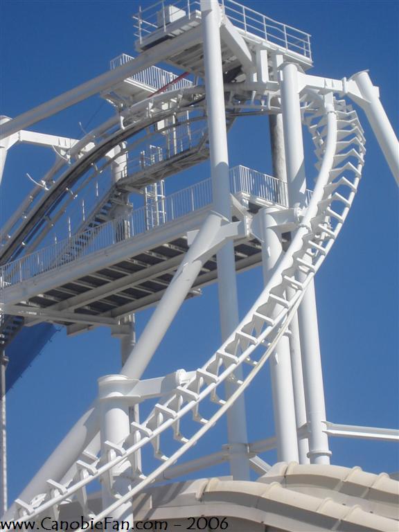 Installed in 1995, this maze of over 2,100 twisted feet of steel takes riders high over the raging.